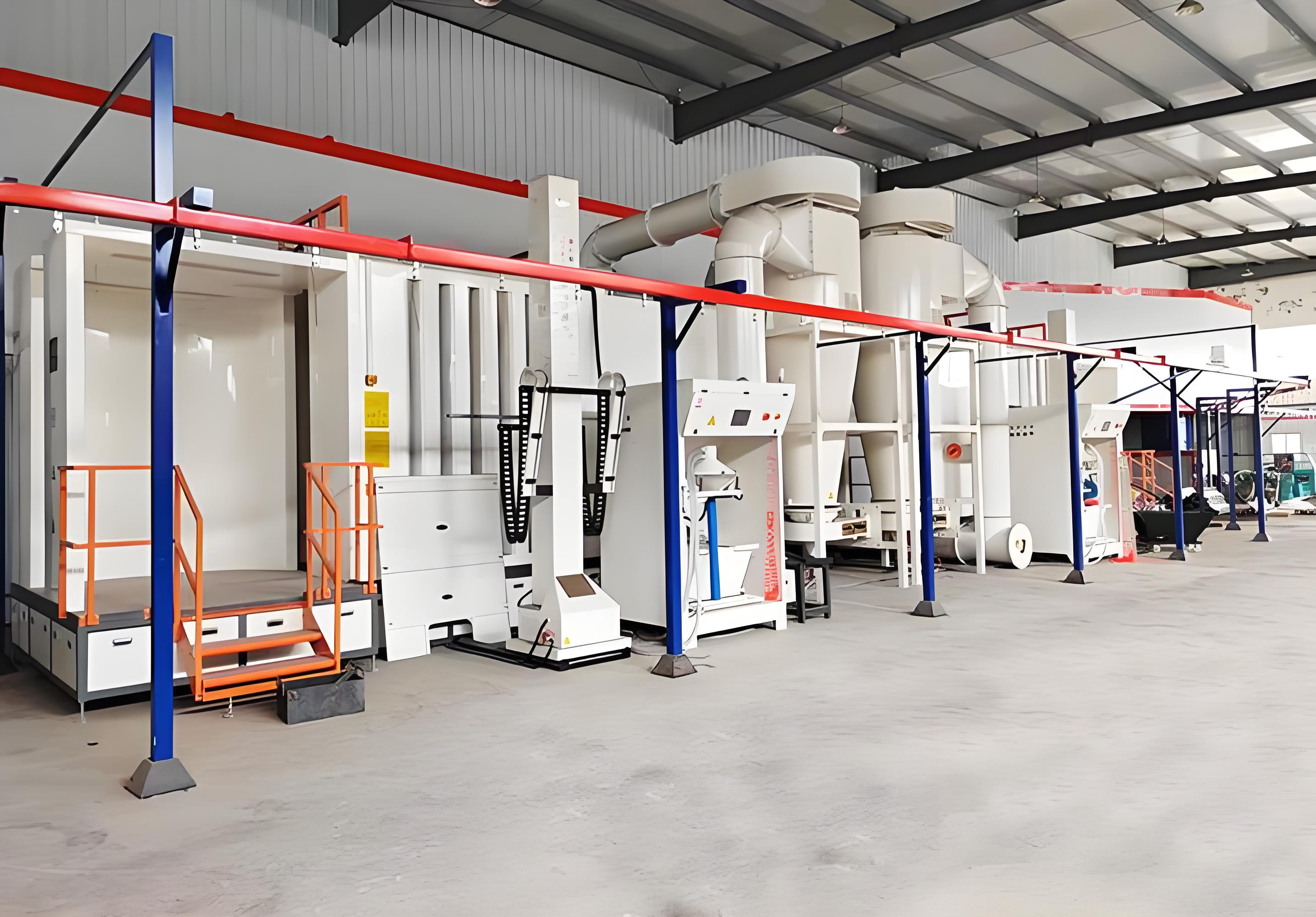 噴粉設備靜電粉末噴涂俗稱“靜電噴塑”。噴涂方式可采用手動、自動或手動+自動。噴料100%是固體粉末,游離的粉末可以回收利用,涂料回收利用率可達98%。懸吊運輸系統,自動化程度高。涂層微孔少,防腐性能好,并可一次進行厚膜涂。