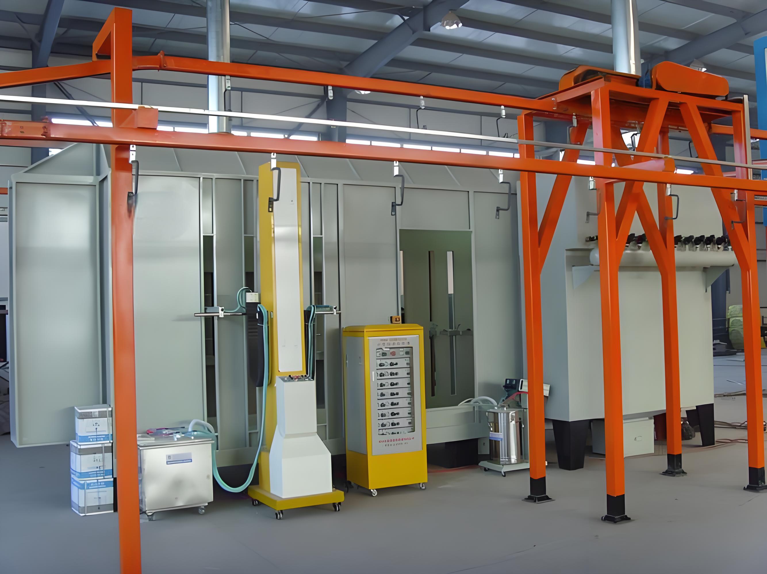 噴粉設備靜電粉末噴涂俗稱“靜電噴塑”。噴涂方式可采用手動、自動或手動+自動。噴料100%是固體粉末,游離的粉末可以回收利用,涂料回收利用率可達98%。懸吊運輸系統,自動化程度高。涂層微孔少,防腐性能好,并可一次進行厚膜涂。